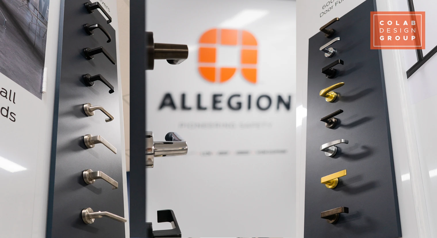 Colab designed and delivered a clean, high-impact shop-in-shop showroom anchored by a bold 3D ALLEGION logo and refined brand detailing. Purpose-built display panels present a wide range of hardware in an organised, tactile format, allowing architects and trade customers to engage directly with the products. The result is a premium, cohesive environment that elevates ALLEGION’s in-store presence, strengthens brand positioning and enhances customer interaction at point of sale.