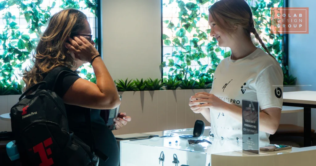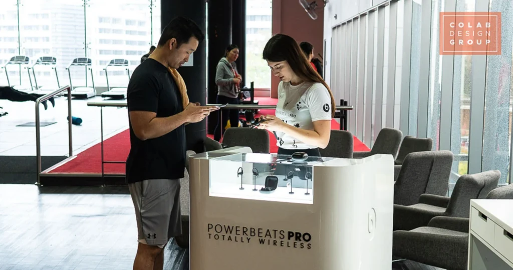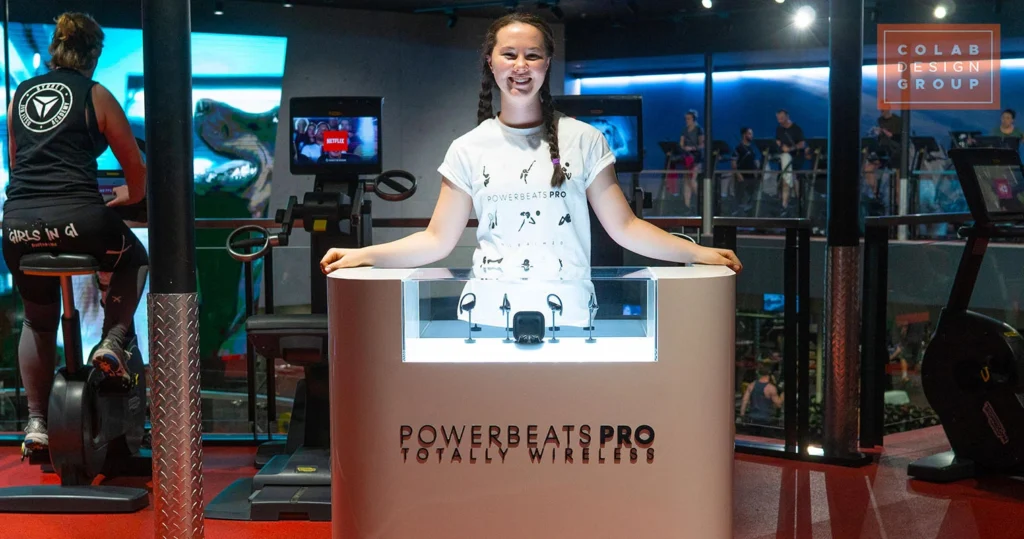 Colab designed and delivered a sleek, multifunctional in-gym activation with high-gloss finishes and integrated branding, purpose-built for durability and premium impact. The custom display allowed Fitness First members to trial Powerbeats Pro during workouts and explore Apple Watches and iPhones on-site, with seamless online purchasing. The result was a high-engagement brand experience that stood out in a busy gym environment, driving hands-on product interaction and reinforcing Apple and Beats’ performance-led positioning through real-world use.
