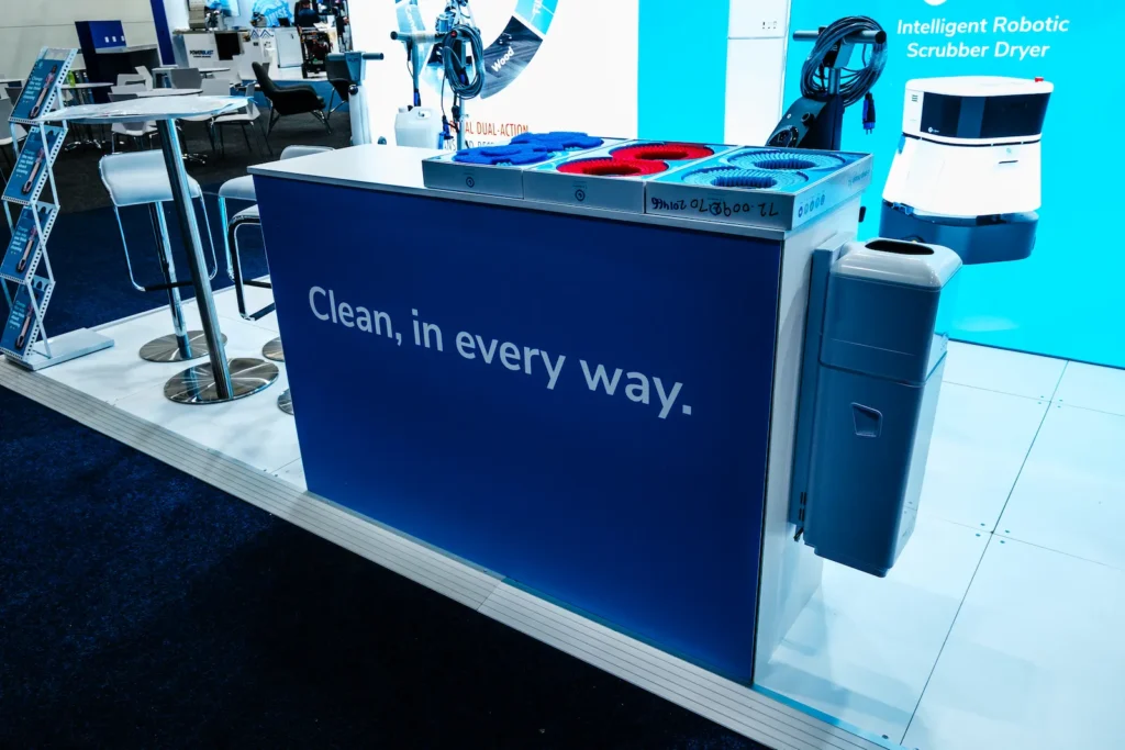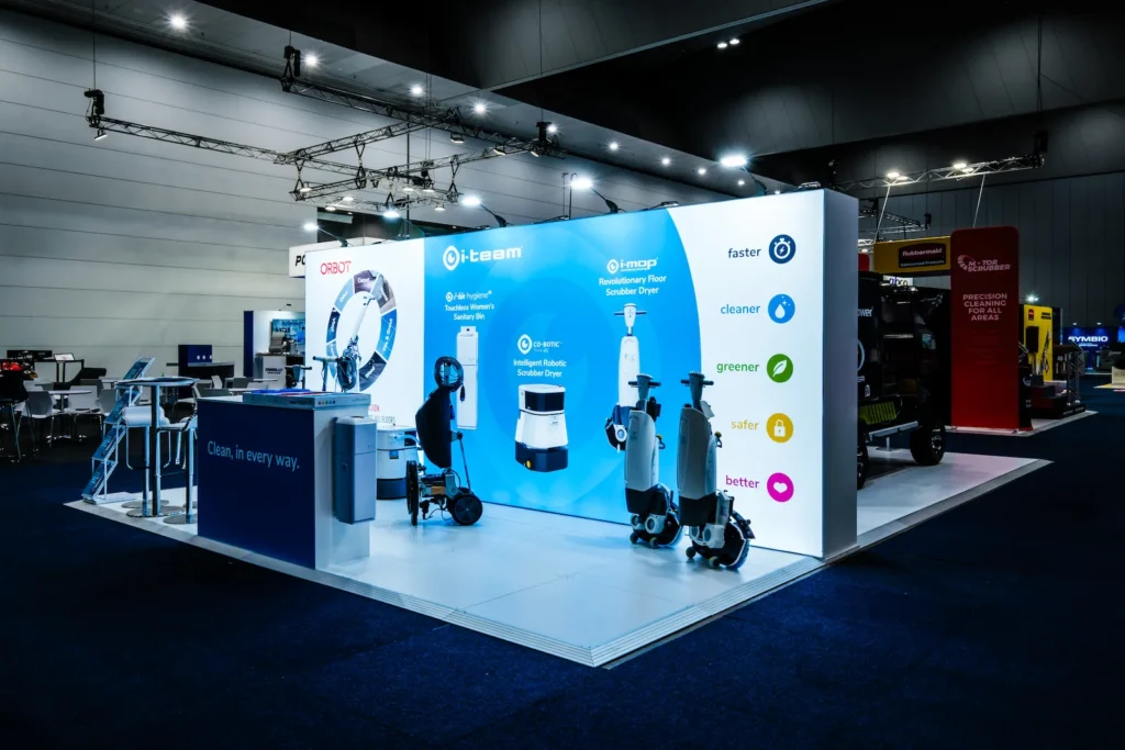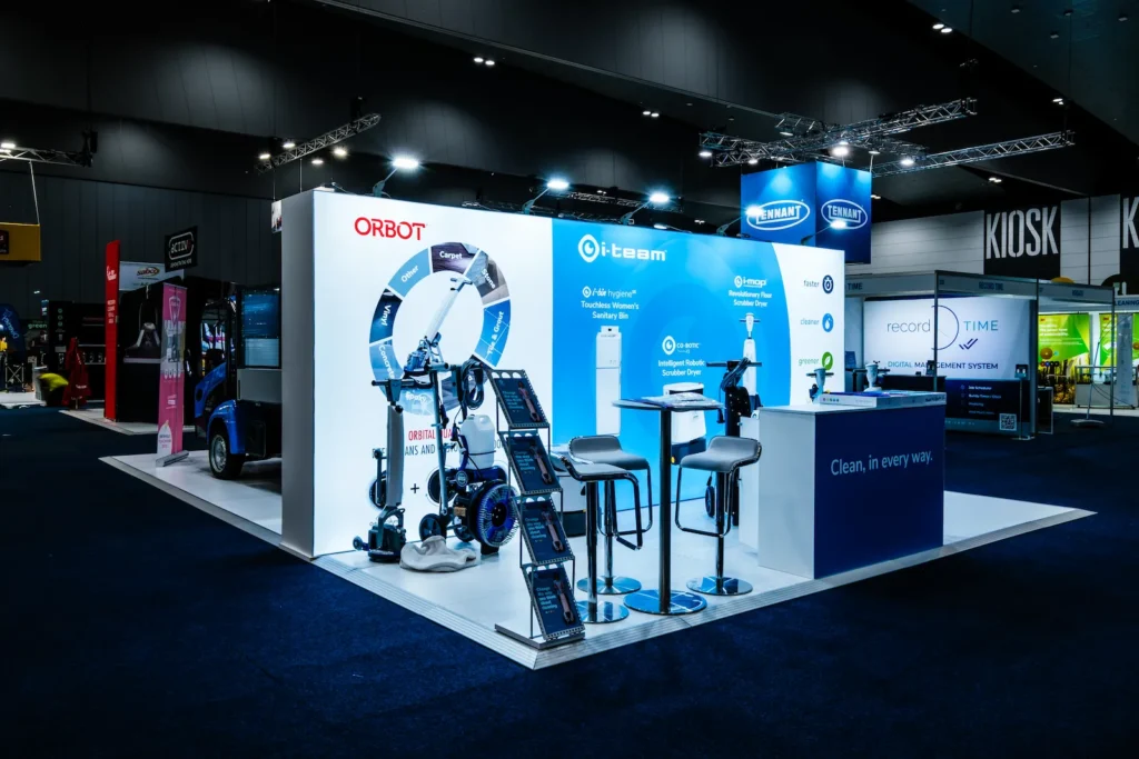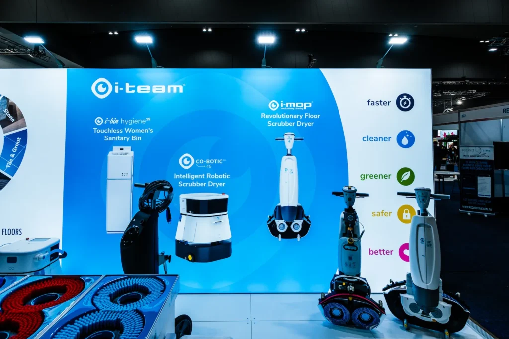 The result was a modern, engaging stand that effectively showcased i-team’s innovative solutions. Illuminated branding, live demos and open meeting spaces encouraged interaction and meaningful discussions, reinforcing i-team’s position as a leader in commercial cleaning technology across Australia and New Zealand.