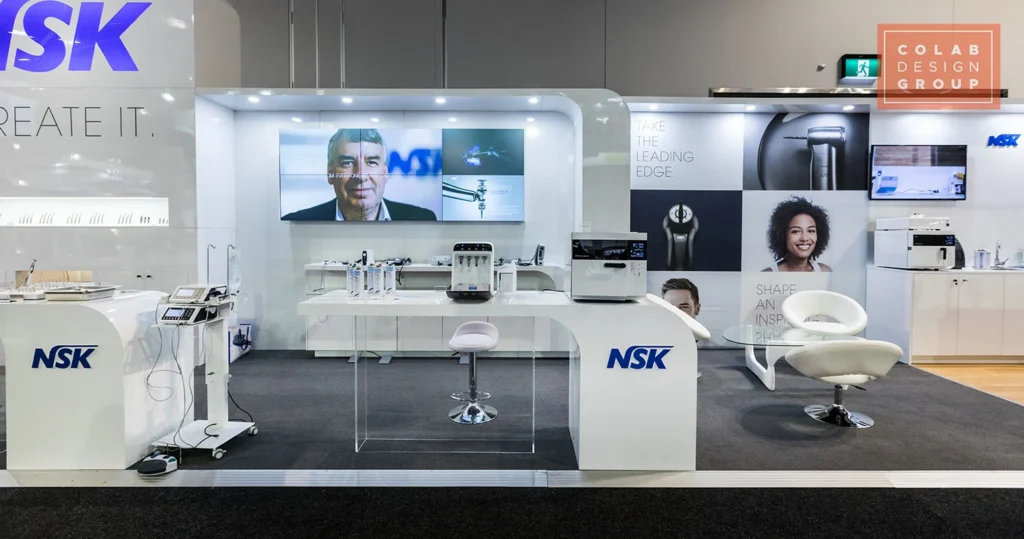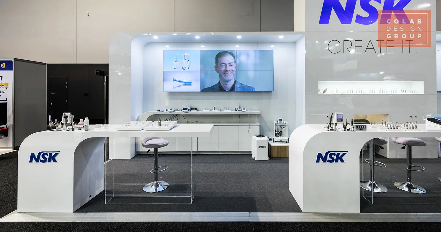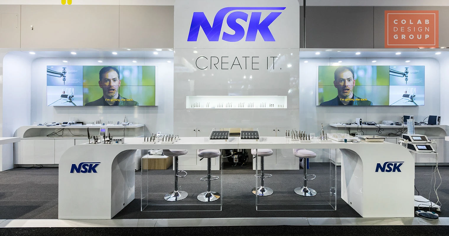 NSK required a modern, innovative exhibition stand for ADX 2018 that would reflect its leadership in dental technology while delivering a premium, hands-on customer experience. Within an 18m x 3m footprint, the space needed to showcase multiple product ranges, support live demonstrations and maximise brand visibility in a competitive trade show environment.