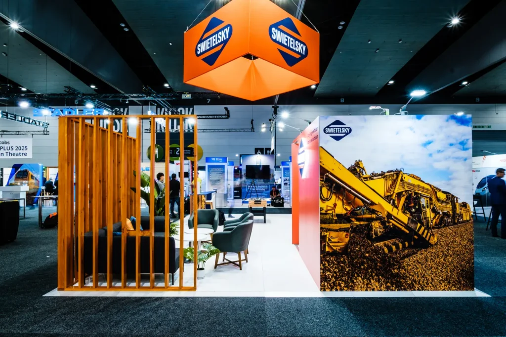 A bold, engaging stand that cut through the show floor and positioned Swietelsky Rail Australia as a standout leader at AusRAIL 2025.
