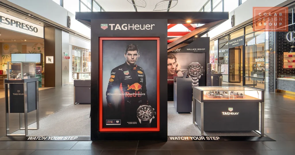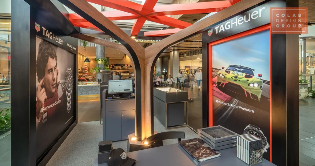 Colab delivered a bespoke retail environment for TAG Heuer through custom production design and precision joinery, creating a bold yet elegant space with premium materials and integrated lighting. The result is a sophisticated, high-end retail presence at Westfield Chermside that elevates product presentation, encourages customer engagement, and reinforces the brand’s luxury positioning.