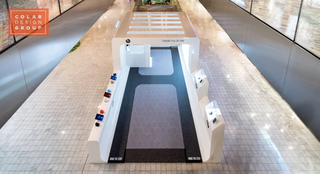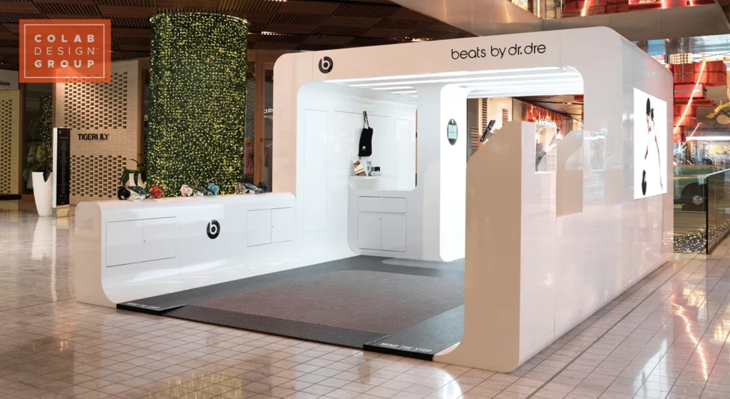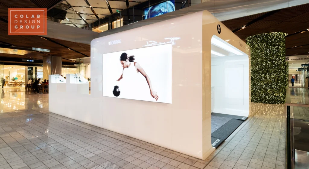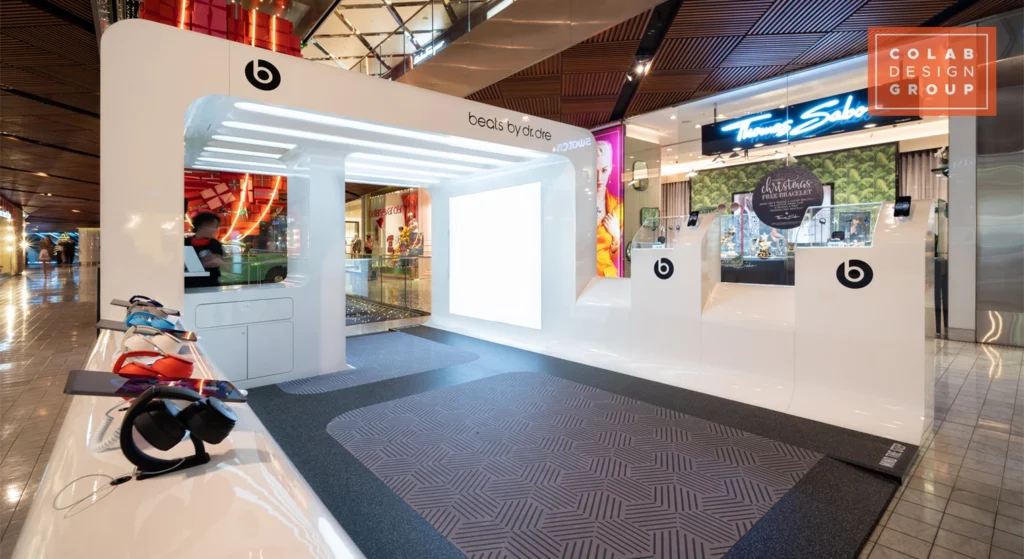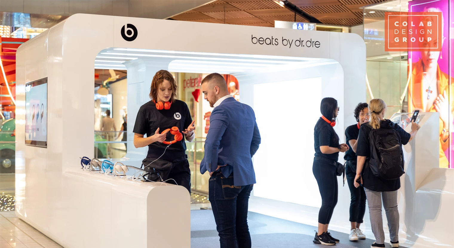 Colab designed and delivered a bold, custom retail kiosk with clear product zoning to showcase Beats by Dr. Dre’s latest range. The activation featured dedicated displays for headphones and Beats Pro wireless units, a central counter presenting Apple Watches and iPhones, and an integrated photo booth with branded giveaways to drive participation. The result was a polished, high-energy brand experience that attracted strong foot traffic, encouraged hands-on product trials, and reinforced Beats’ premium positioning during its two-week activation at Westfield Pitt Street.
